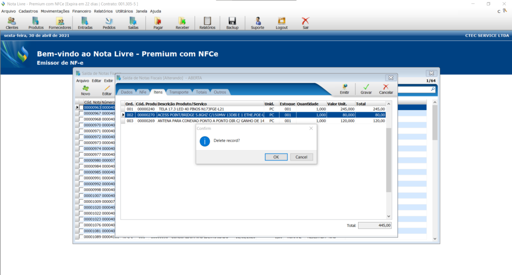 # Como deletar um item da nota