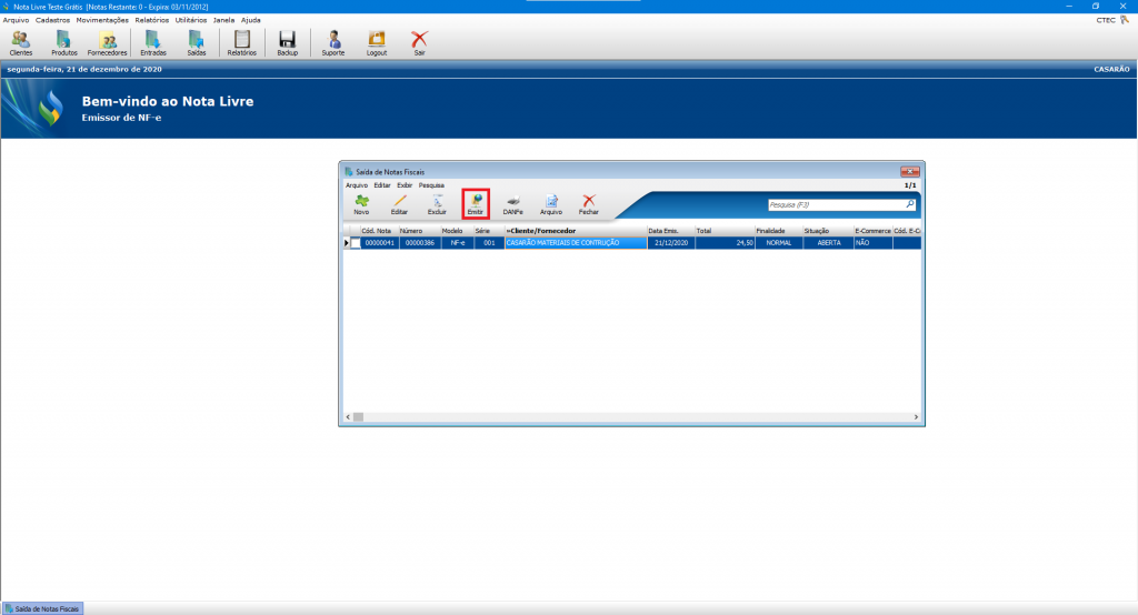 3\. Clique em **Confirmar** > **Gravar** e **Emitir**.