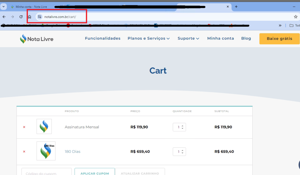 Quando o cliente tiver uma assinatura mensal e quiser trocar para um plano maior, clica em MINHA CONTA > e trocar o caminho do link (conforme está em vermelho para "cart")
