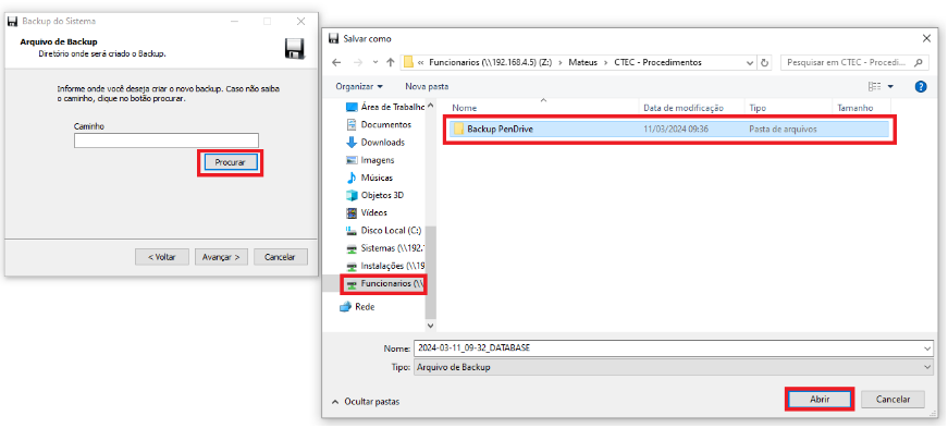 Clique em **Procurar** e selecione a pasta onde deseja salvar o arquivo de backup em seguida em **Avançar**;