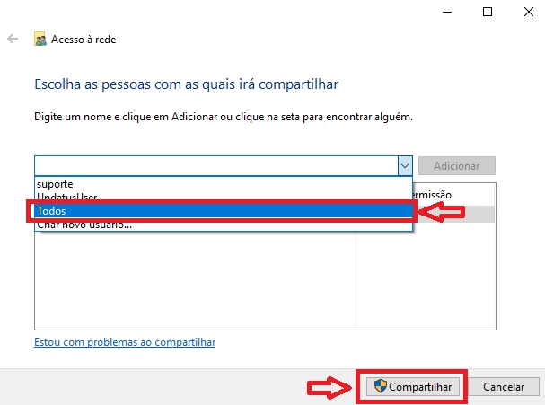 “Leitura”: para não permitir alterações na pasta ou “Leitura/Gravação” para permitir que outras pessoas abram e salvem novos arquivos na pasta;