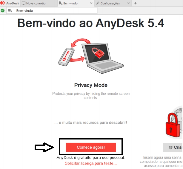 7. Na próxima tela, clique em Comece agora e será direcionado para a tela principal do AnyDesk.