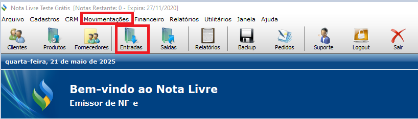 1. Abra o sistema Nota Livre.\